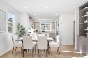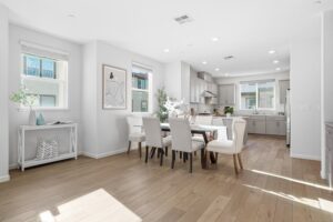 - This highly desirable corner-unit townhome blends contemporary styling with exceptional natural light, enhanced by windows on multiple sides that create a bright and welcoming atmosphere. The thoughtfully designed open-concept living level features a refined living room, elegant dining area, spacious kitchen, and a cozy balcony—an ideal setting for both relaxation and entertaining. The gourmet kitchen impresses with a sizable semi-island, sleek countertops, stainless steel appliances, and abundant modern cabinetry.