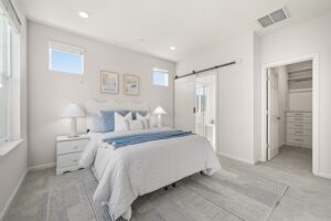 - The functional floor plan includes a convenient bedroom and full bath on the ground level, perfect for guests, extended family, or a private office setup. The upstairs primary suite offers comfort and privacy with a walk-in closet and dual-sink ensuite bath. Additional conveniences include in-house laundry, recessed lighting throughout, multizone heating and air conditioning, and an attached 2-car side-by-side garage with generous storage space.