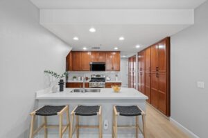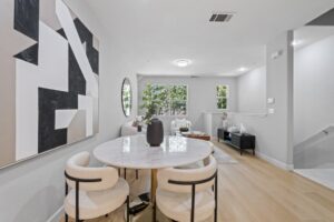 - The sunlit main floor showcases stylish new flooring and crisp, newly painted walls. The remodeled kitchen features a brand-new semi center island, generous cabinet space, and sleek stainless steel appliances, all flowing effortlessly into the adjacent dining and living areas—perfect for both daily living and hosting guests.